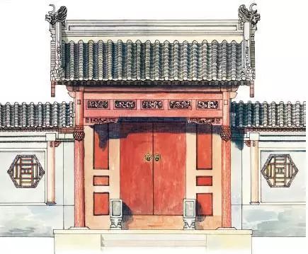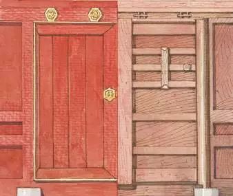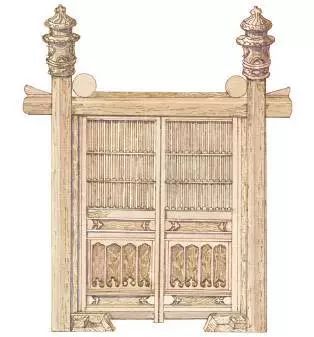 为了固定大门的门扇,在门扇与门柱之间还要加装门框,这样一来门扇的宽度自然要小于大门门柱之间的宽度。门框的增加则又必须要同时增加许多门类构件,所以大门的结构看起来貌似非常简单,实际上也有很多细部的装饰与讲究。