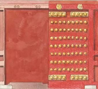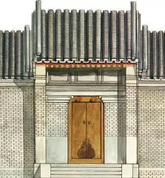 大门门扇从大的方面来看,有实榻门和棋板门两种不同做法,从具体构件上来看,大门门外多安有门钹,门内有插栓。讲究的大门门板多施油漆,尤其是朱红漆最显示等级。此外,在官宦住宅和皇家宫殿建筑的门板上,还多装饰有门钉,门钉一般为五路到十一路,门钉的多少能严格地区分出建筑的等级。